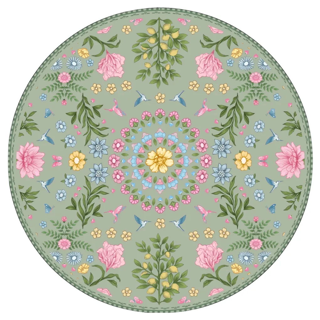 Een vrolijk design vol met details en een frisse groene kleur, deze badmat heeft het allemaal! Met een diameter van 90 cm is hij lekker ruim en past hij in de meeste badkamer perfect.