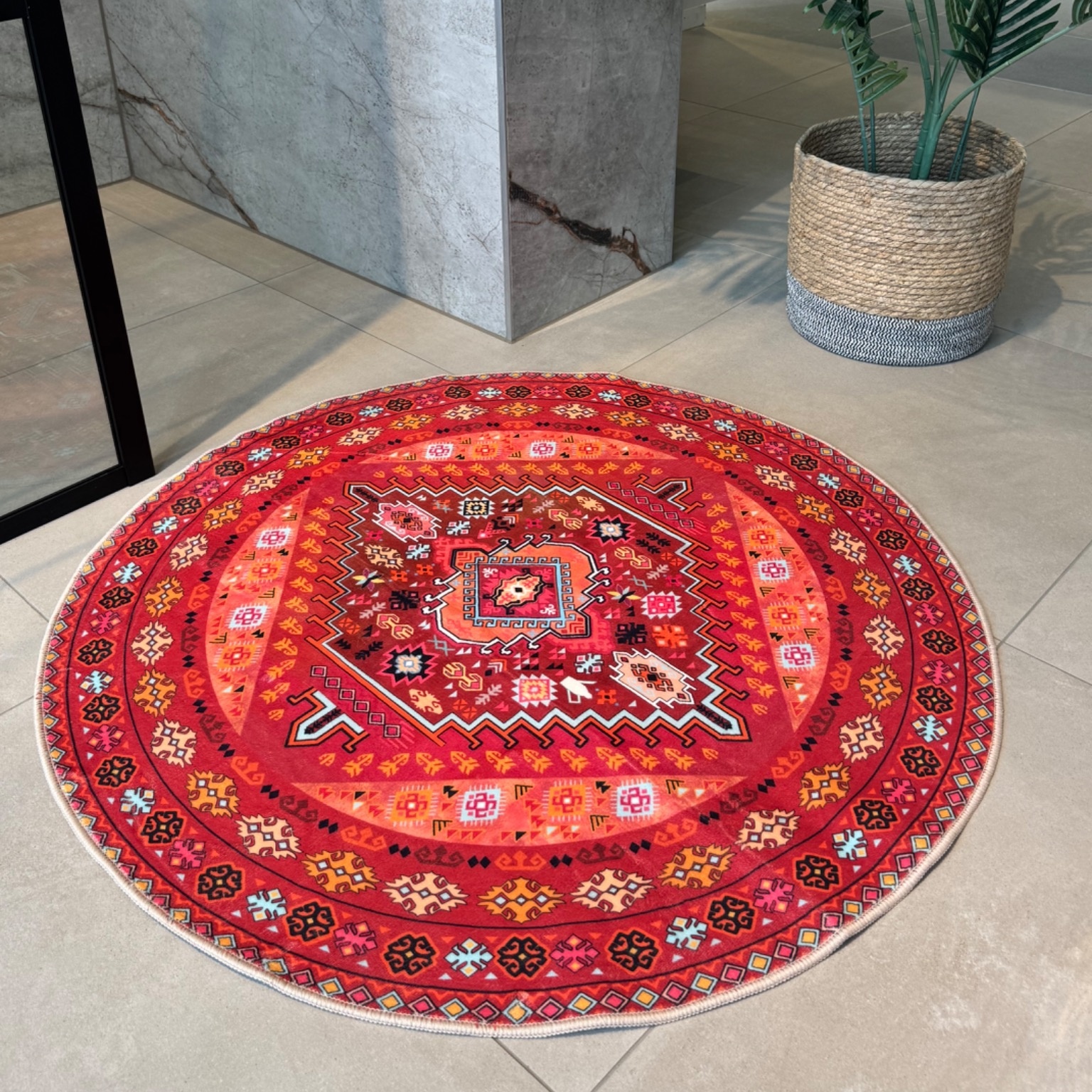 Het zonnetje in huis! Dat is deze kleurrijke badmat, voorzien van roze, oranje en geel tinten en een prachtig design, geïnspireerd op authentieke Marokkaanse vloerkleden. Het matje heeft dan ook vele mooie details!