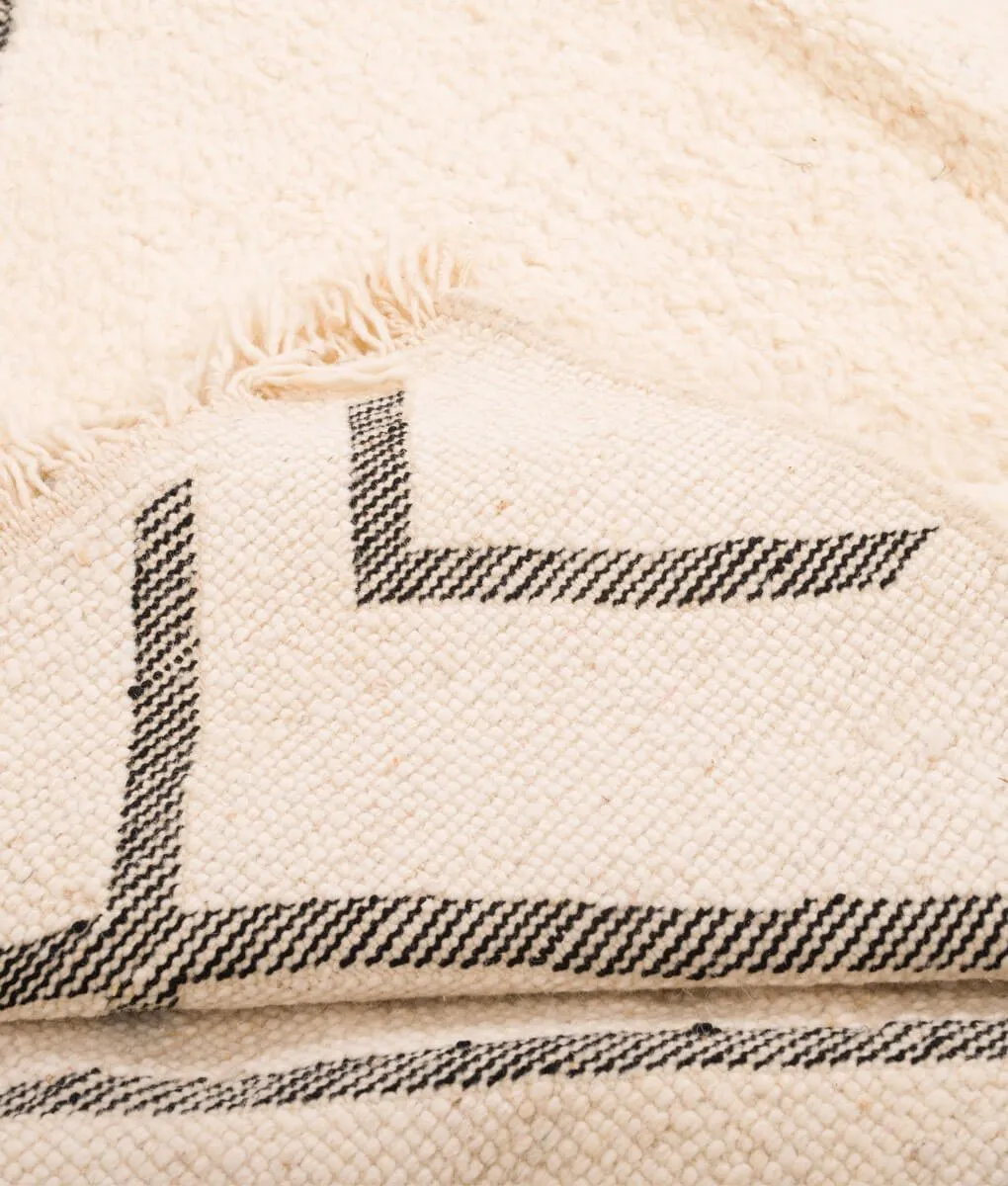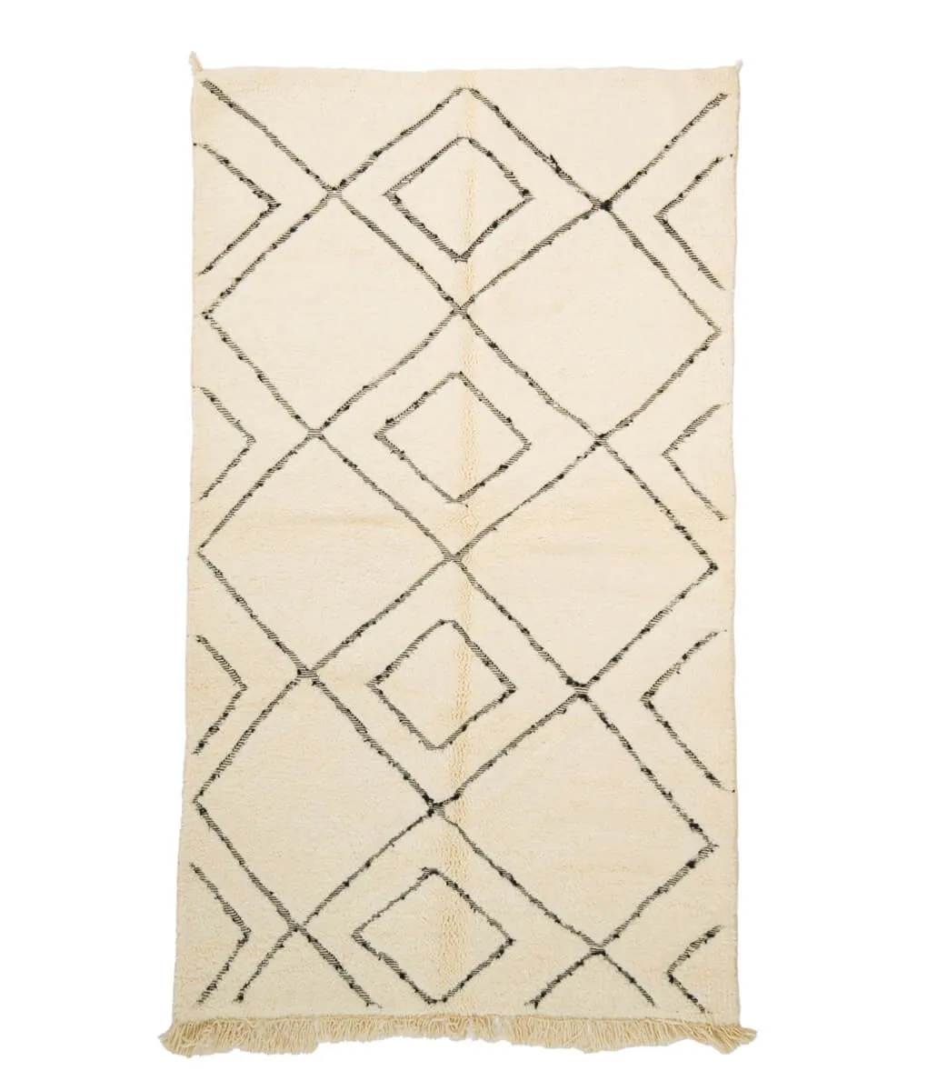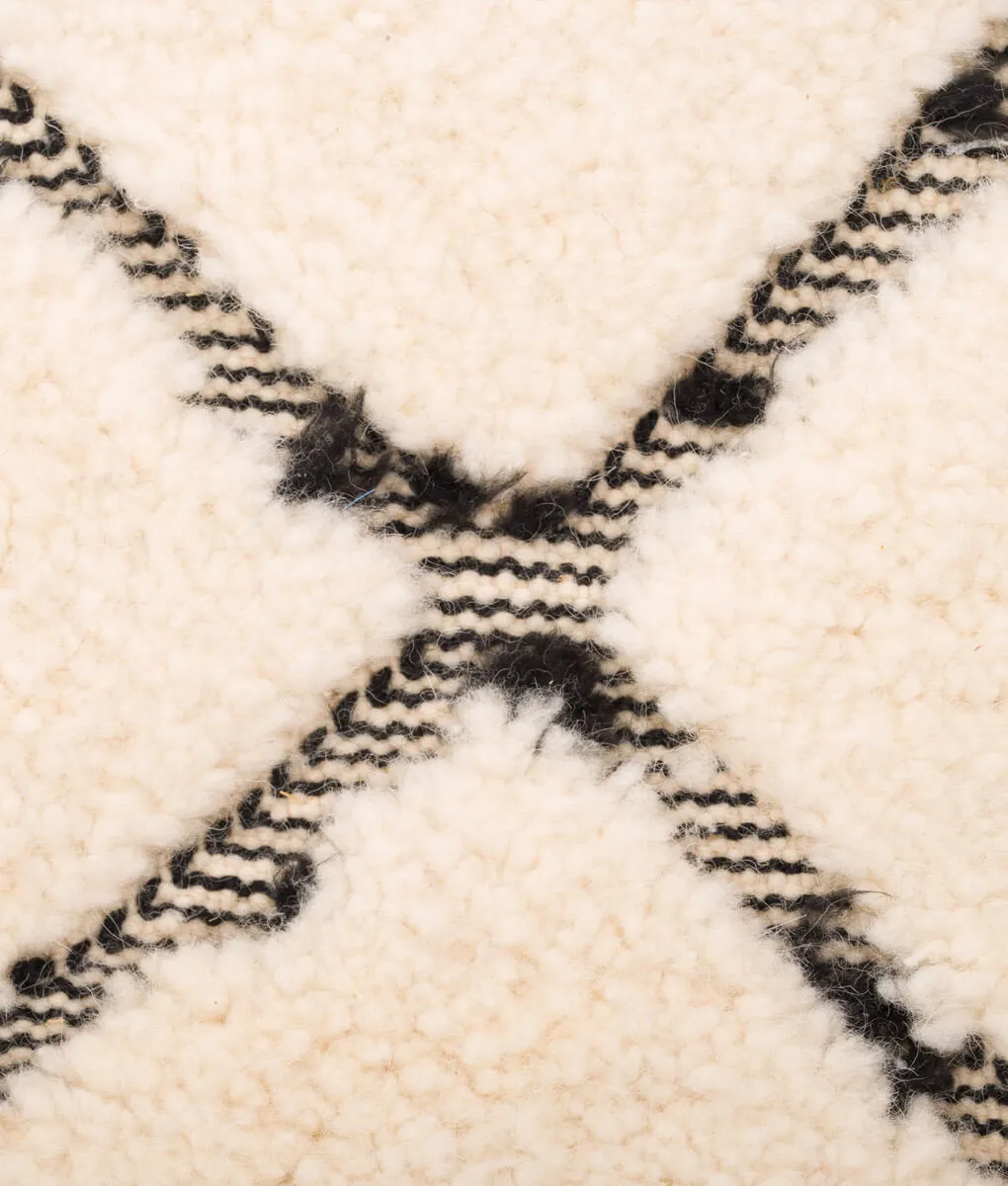 Bekend om zijn asymmetrische patronen is deze mooie Beni Ouarain met zwarte Webers in het wol een kleed welke in een modern maar ook een klassiek interieur kan stralen. Handgemaakt in het Atlas gebergte van Marokko.