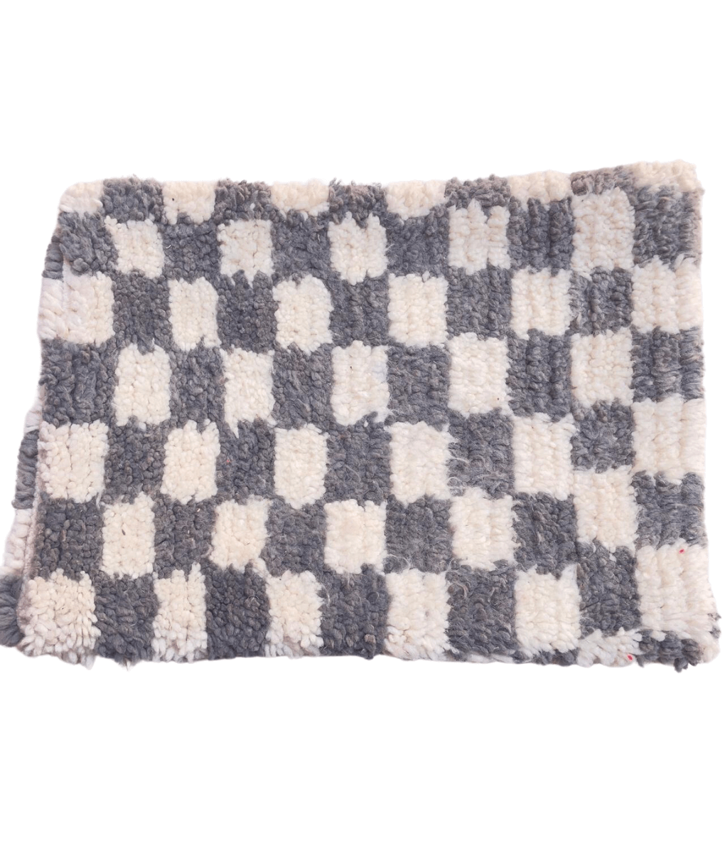 Dit Marokkaanse kussen heeft een speels blokjes patroon in grijs en wit! Super tof voor in een modern interieur.