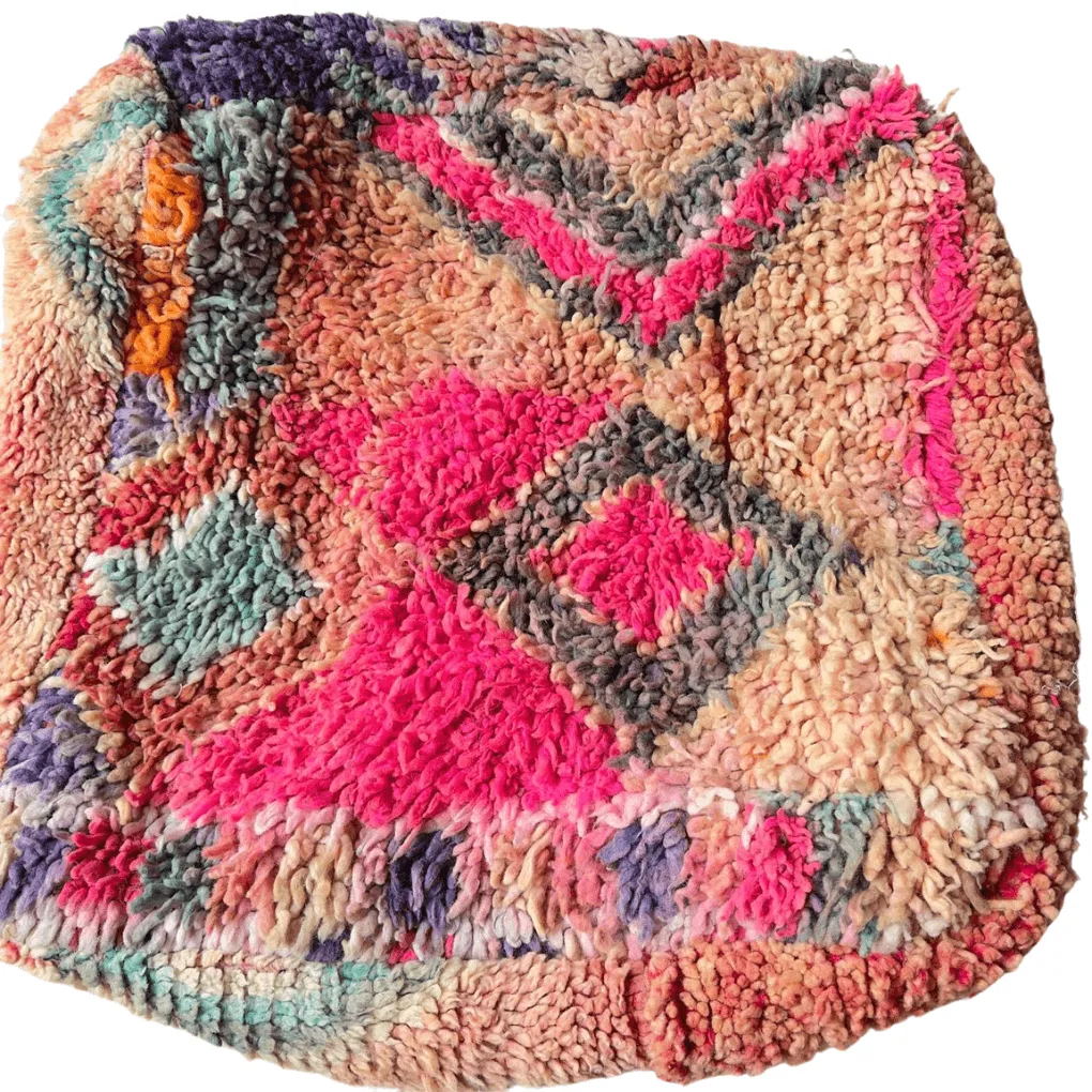 Marokkaanse poef voorzien van prachtige roze/ terra kleurtjes en een mooie print. Past helemaal binnen de trends van nu! Handgemaakt in het Atlas gebergte van Marokko.