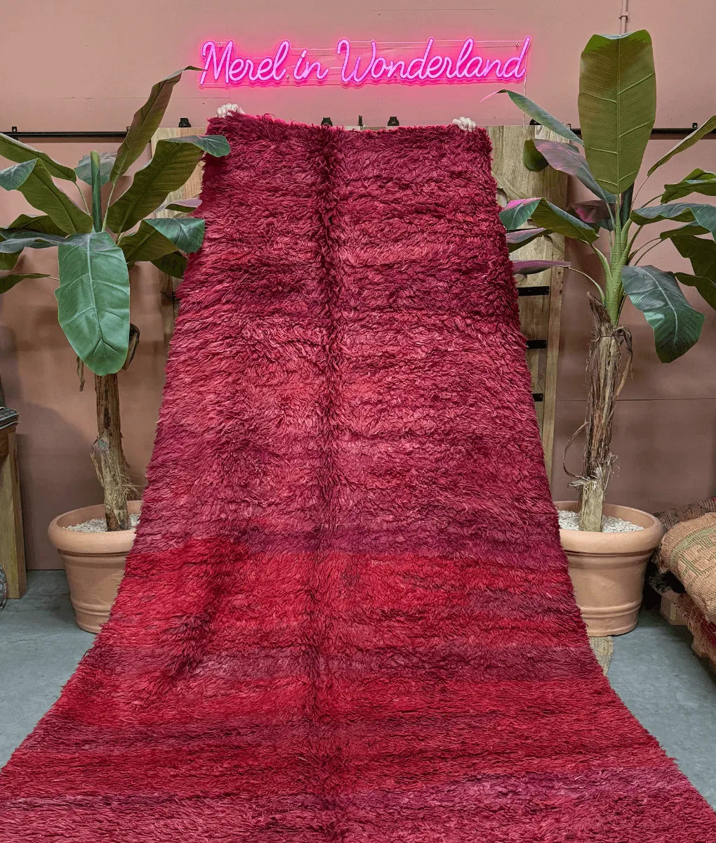 Prachtig Marokkaans Beni Mguild vloerkleed voorzien van een warme terra/ rode kleur en kleurrijke details. Handgemaakt in het Atlas gebergte van Marokko. Past perfect bij de trends van nu!
