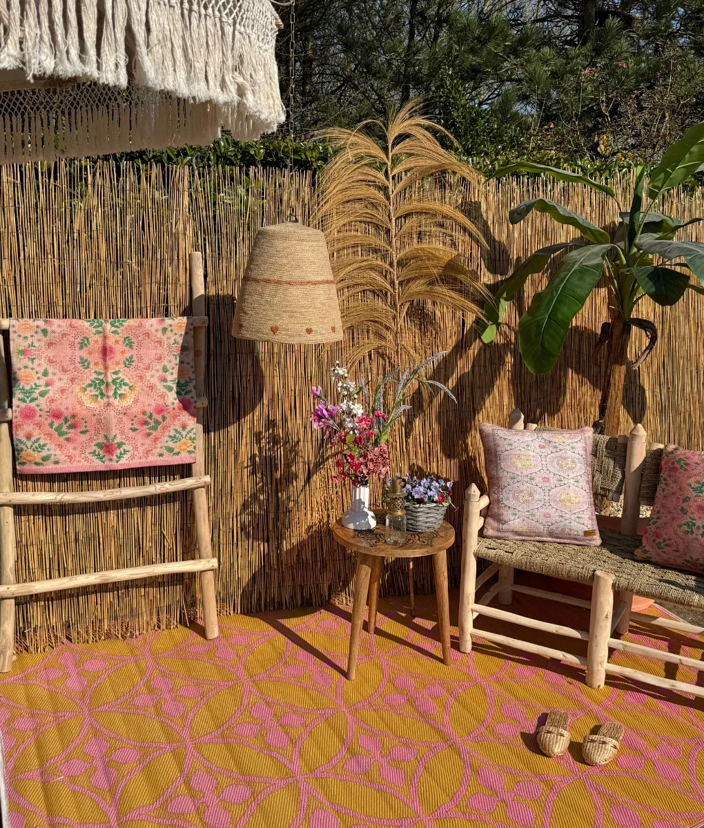 Roze, okergeel buitenkleed