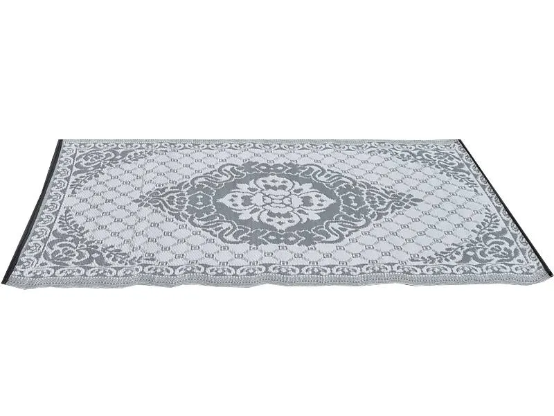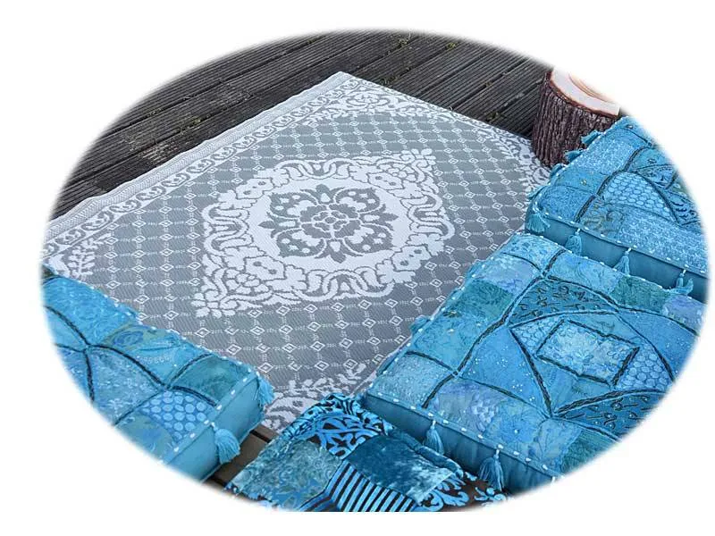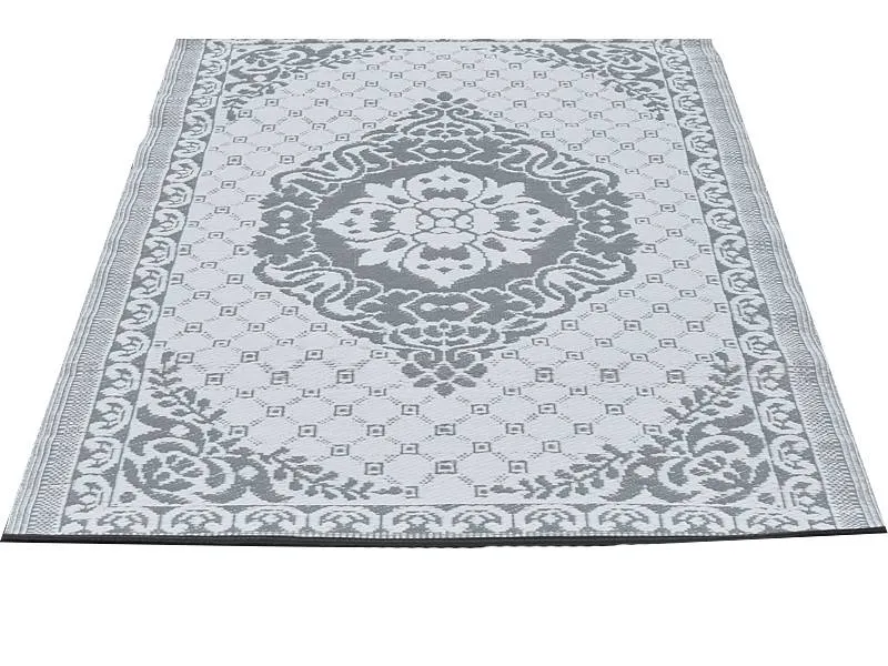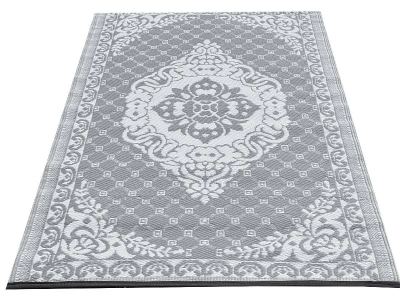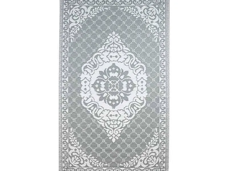 Sierlijke arabische print is in dit plastic buitentapijt gevlochten. Gemaakt van gerecycled plastic en in India geproduceerd, het leuke is dat het kleed dubbelzijdig te gebruiken is. Makkelijk te reinigen met water en oprolbaar dus ideaal om lekker mee te nemen naar het strand in de zomer of de picknick. Grijs is een makkelijke kleur om te combineren dus als u veel kleuren in uw tuindecoratie gebruikt is dit een kleed welke rust brengt in het geheel.