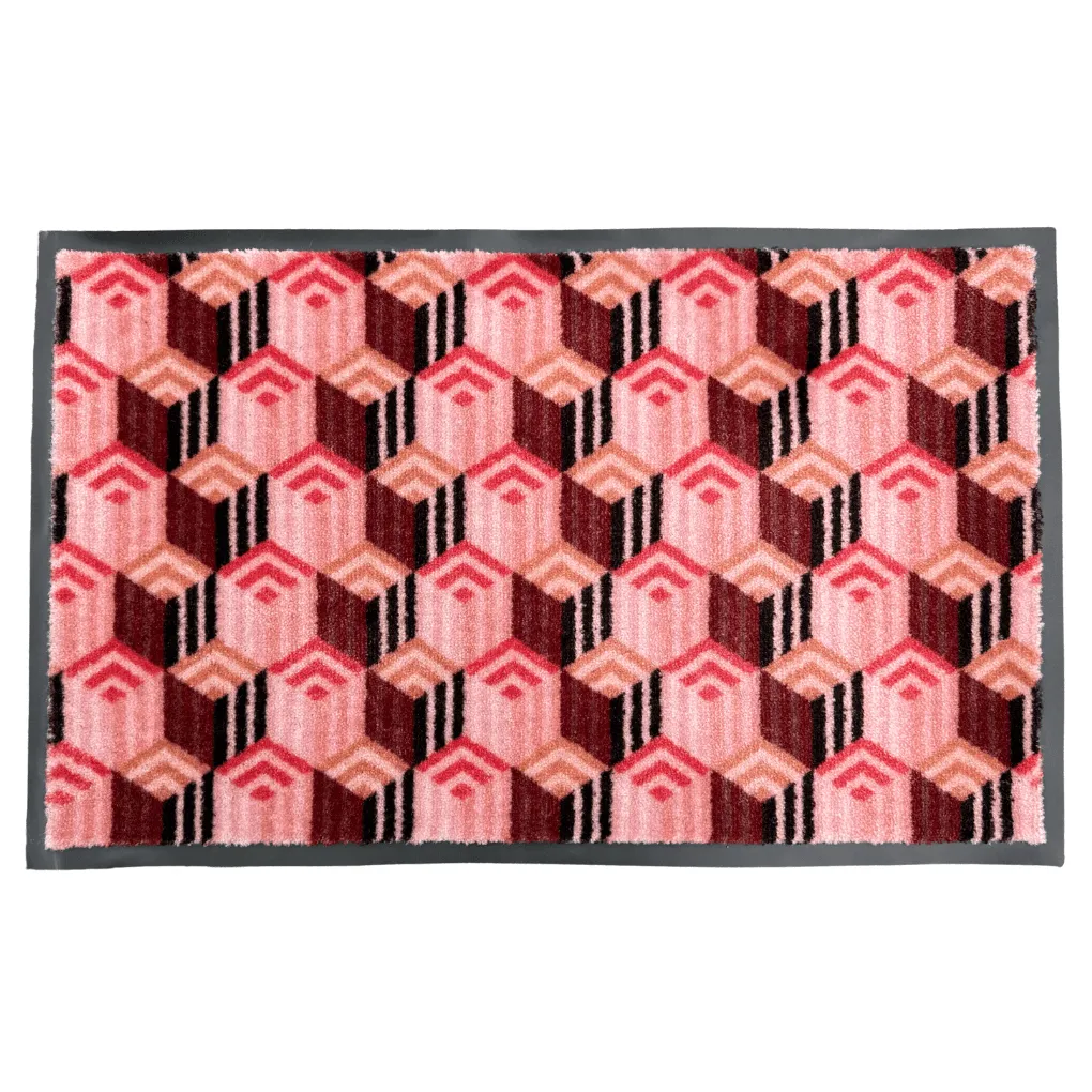 Een toffe moderne deurmat in een geometrisch design! Voorzien van roze en bruin tinten. Een fijne zachte mat met antislip onder- en zijkant, zo blijft hij mooi strak liggen op de grond.