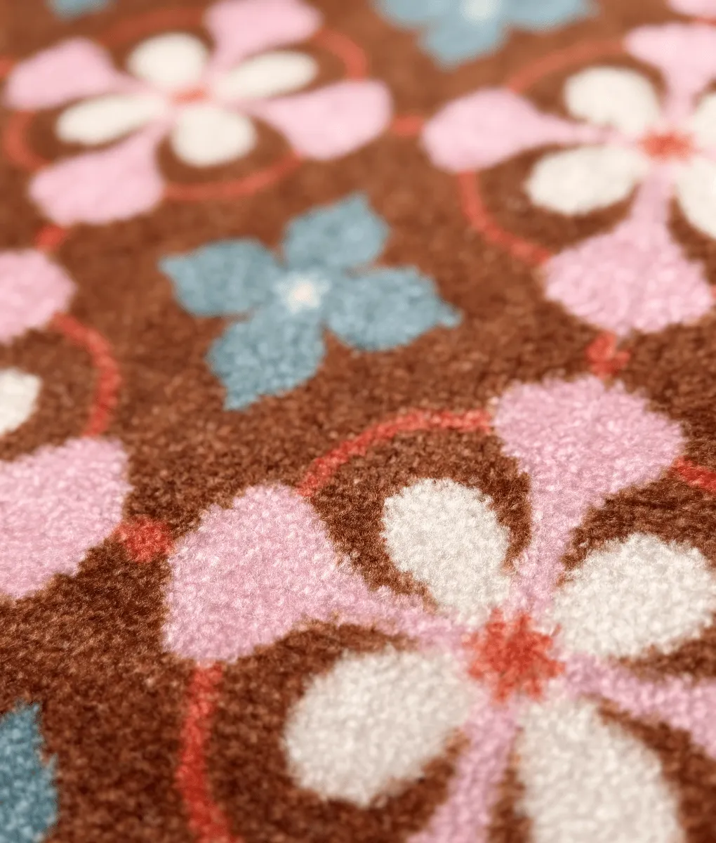 Een sfeervolle design deurmat voor in jouw hal! Voorzien van een bruine/ terra ondergrond en een vrolijk kleurrijk patroon.Lees meer