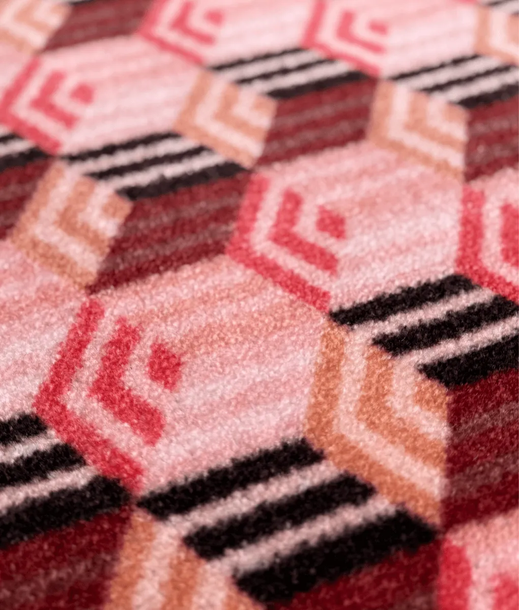 Een moderne droogloopmat voorzien van een geometrisch design in fel roze kleurtjes! Deze toffe deurmat steelt de show bij binnenkomst in huis. Verkrijgbaar in verschillende afmetingen.