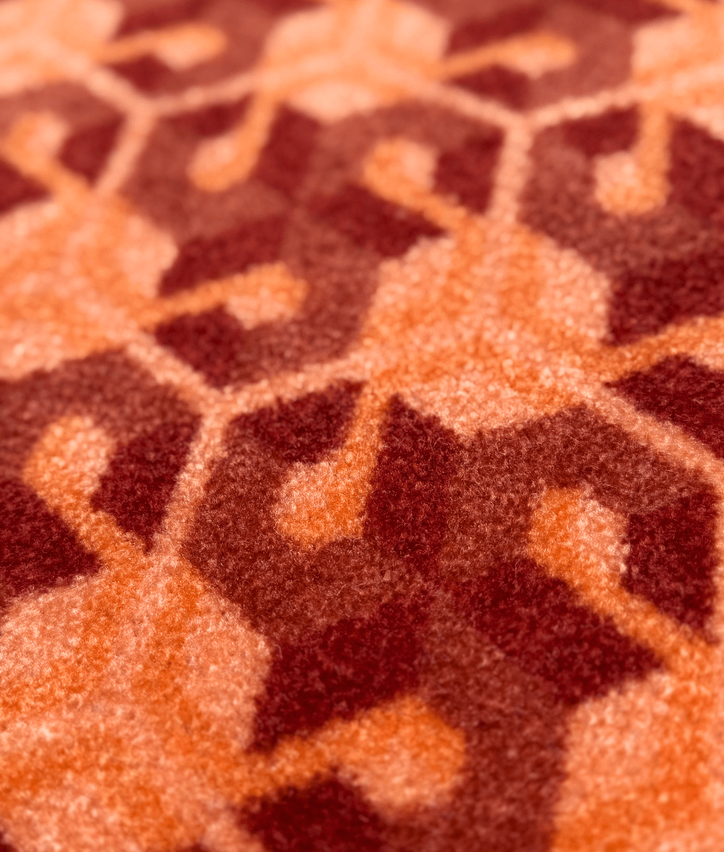 Een vrolijke design droogloopmat voorzien van een modern honinggraat patroon in felle rood en oranje kleurtjes! Een deurmat van sterke kwaliteit en een toffe blikkenvanger in jouw hal.