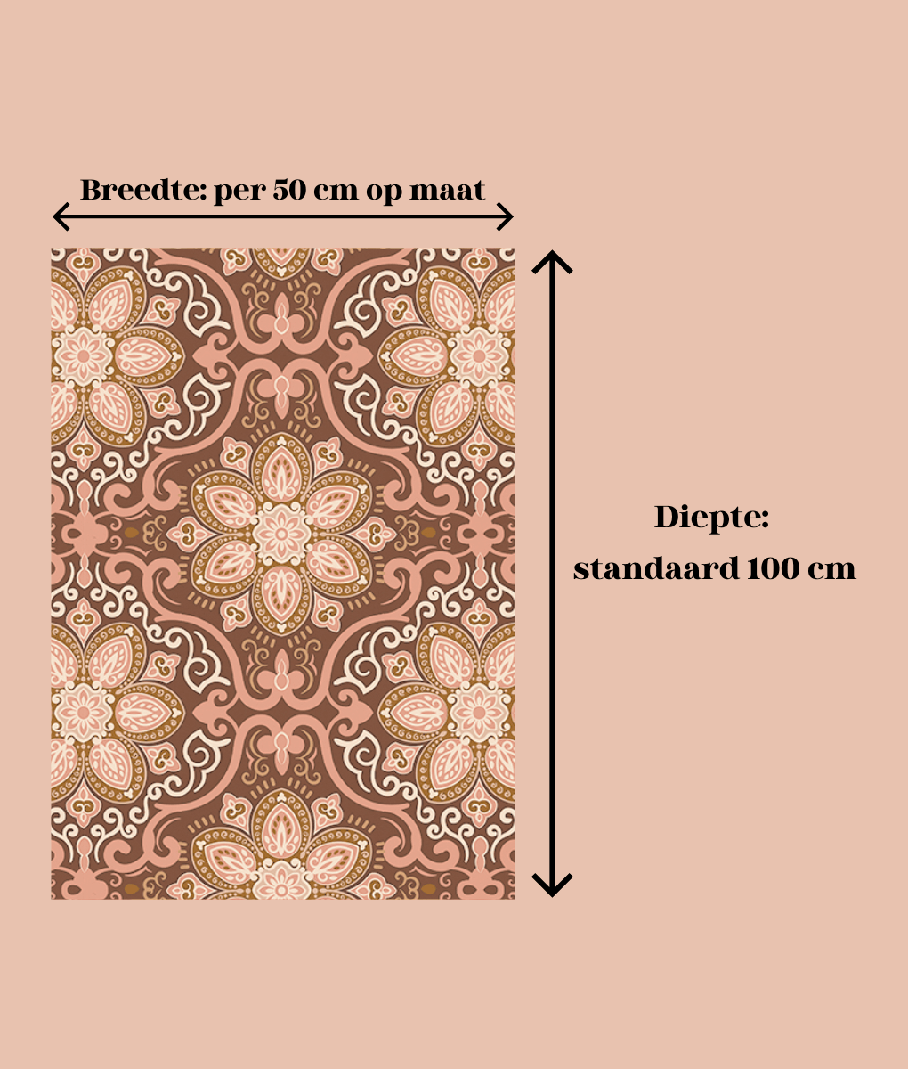 Een warm entree voor jouw huisje. Deze prachtige droogloopmat in zacht roze en bruine kleuren is bestelbaar op maat en zorgt voor een warm welkom in jouw gang! De standaard diepte is 100 cm of 120 cm en de breedte is oneindig te bepalen. (per 50 cm gesneden) Deze matten op maat worden (meestal) gebruikt om in de uitsparing in de vloer te leggen, als u het op de vloer legt kies dan voor een mat met vinyl rand of snij hem zelf helemaal naar wens.