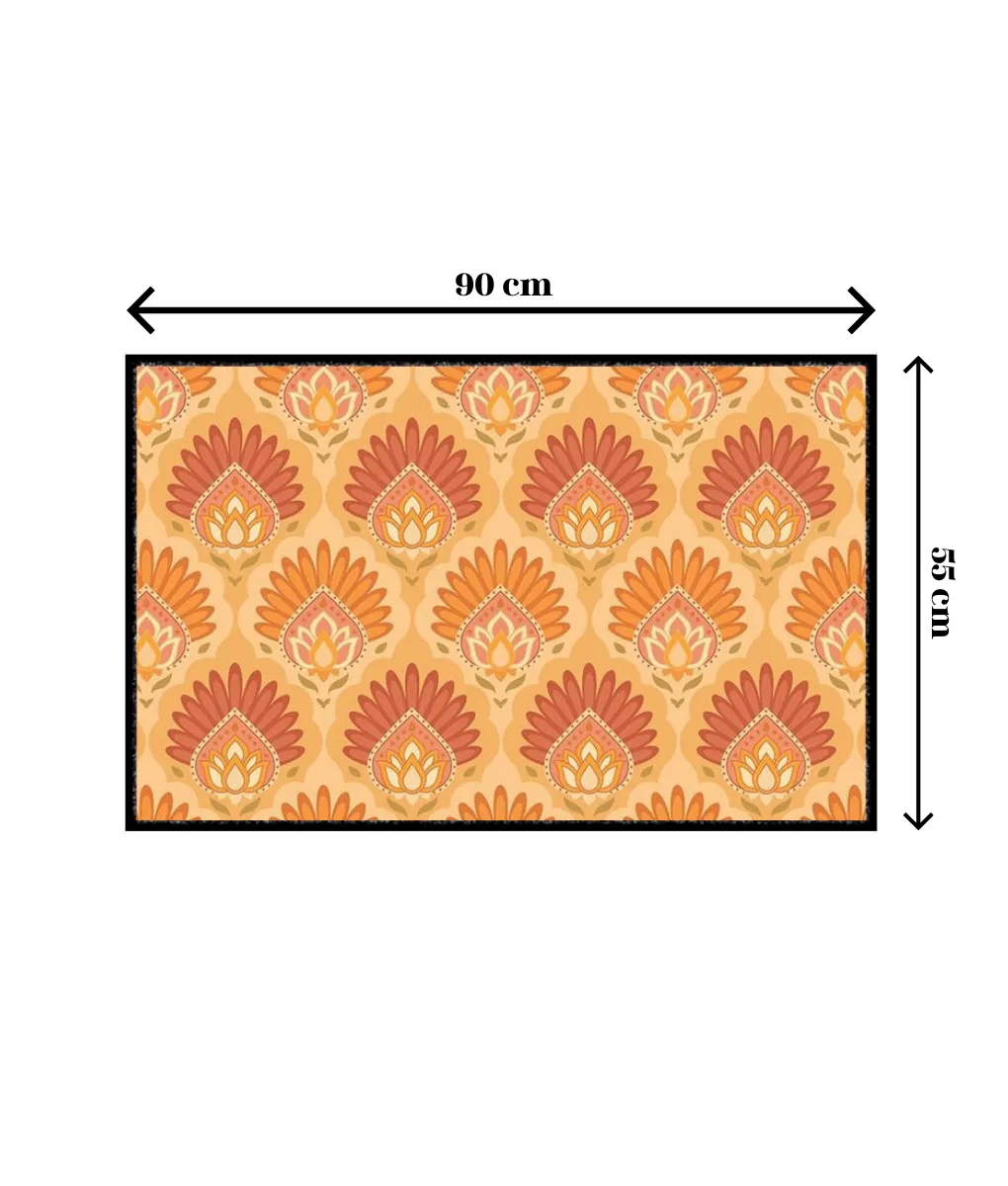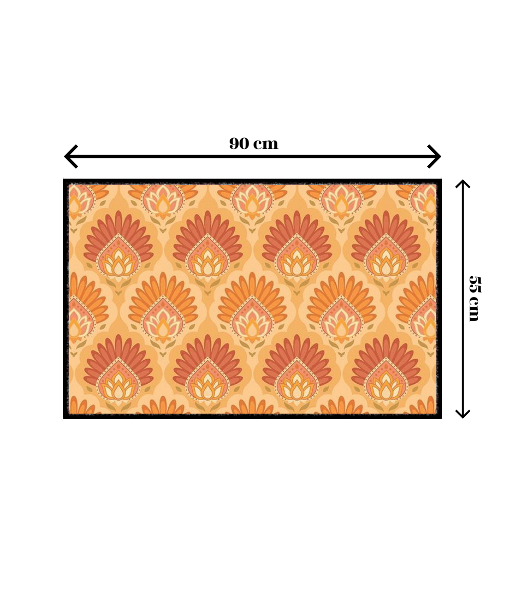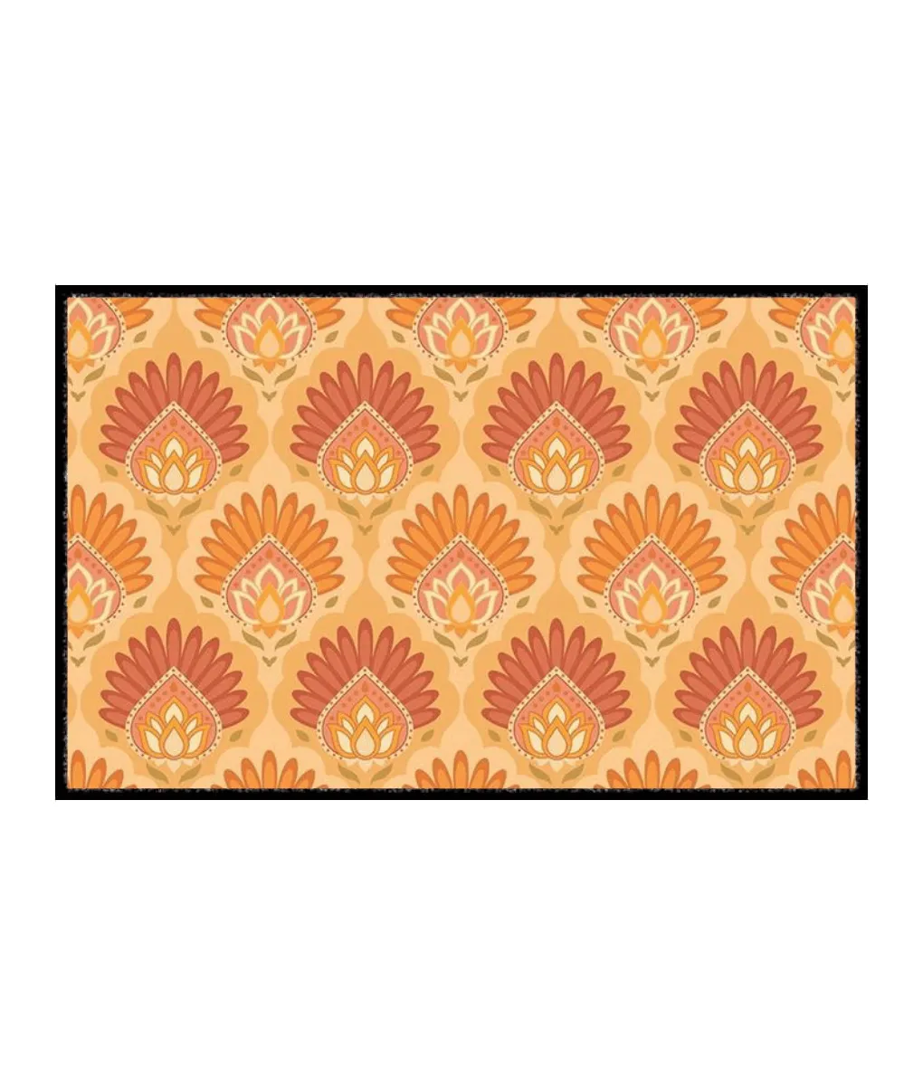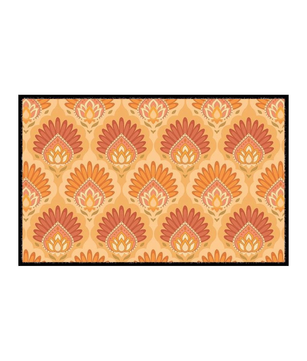 Een warm welkom met deze prachtige Majestic deurmat in jaren 60 kleuren en patroon welke tijdloos is. De maat is 55 x 90 cm zodat deze mat bij de meeste voordeuren past. Om de print heen zit een zwarte vinyl rand en het stof voelt zacht aan. Deze design schoonloopmatten zijn speciaal ontworpen voor Merel in Wonderland en u heeft hiermee echt een limited Edition mat in huis.