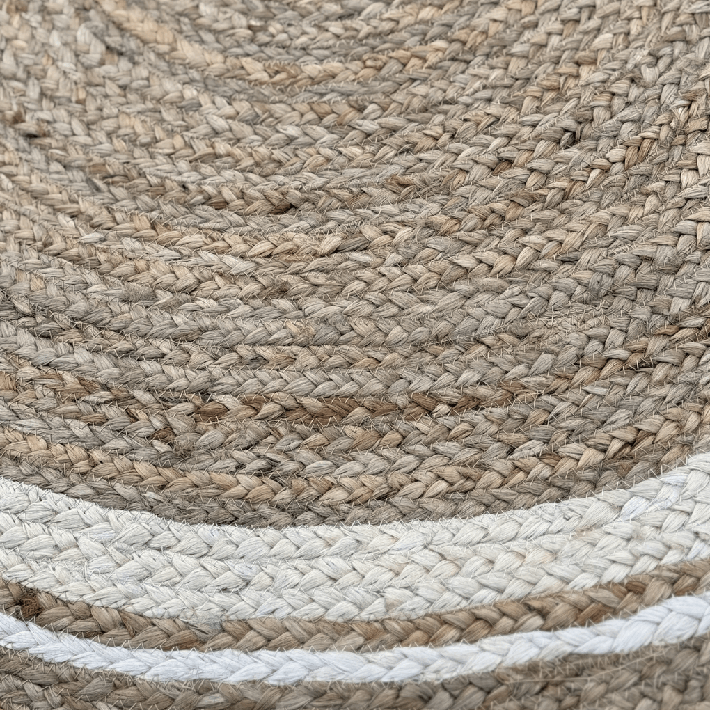Creëer een Ibiza look in huis met dit toffe jute vloerkleed in een speelse ronde vorm. Het is een rustig kleed met speelse beige lijnen.