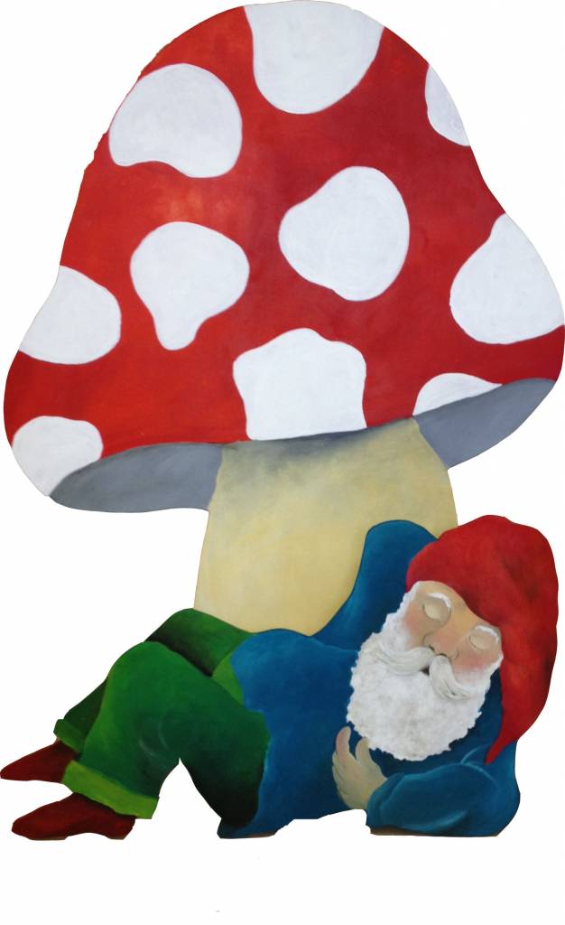 Kinderkamerverlichting slapende kabouter tegen paddestoel