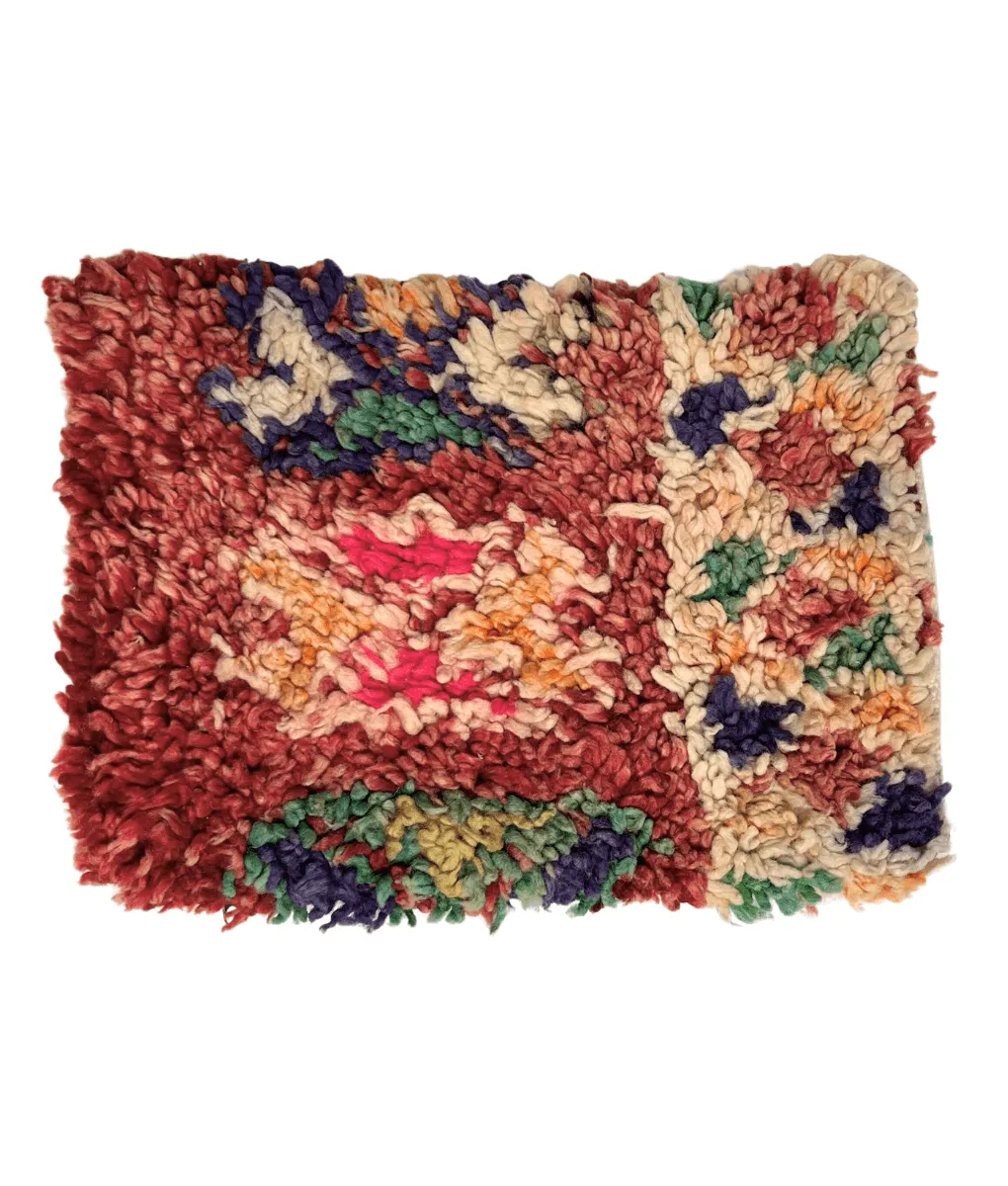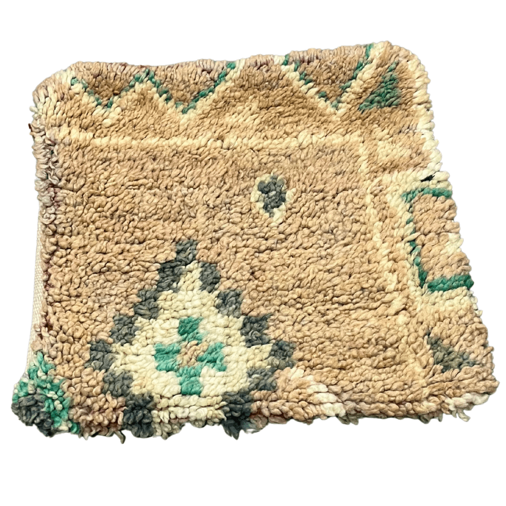 Marokkaans kussentje voorzien van een kleurrijk patroon. Lekker zacht voor op de bank! Handgemaakt in het Atlas gebergte van oude berber vloerkleden.