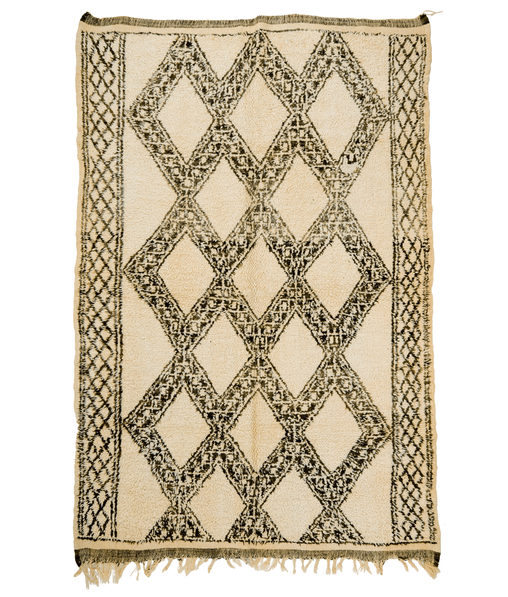 Een prachtig Beni Mguild vloerkleed voorzien van een zwart witte print en echt berbers patroon. Super sfeervol in jouw interieur! Handgemaakt in het Atlas gebergte van Marokko. Een heel ander sfeertje dan alle kleurrijke kleden, maar zeker niet minder mooi en perfect in een wat rustiger interieur!