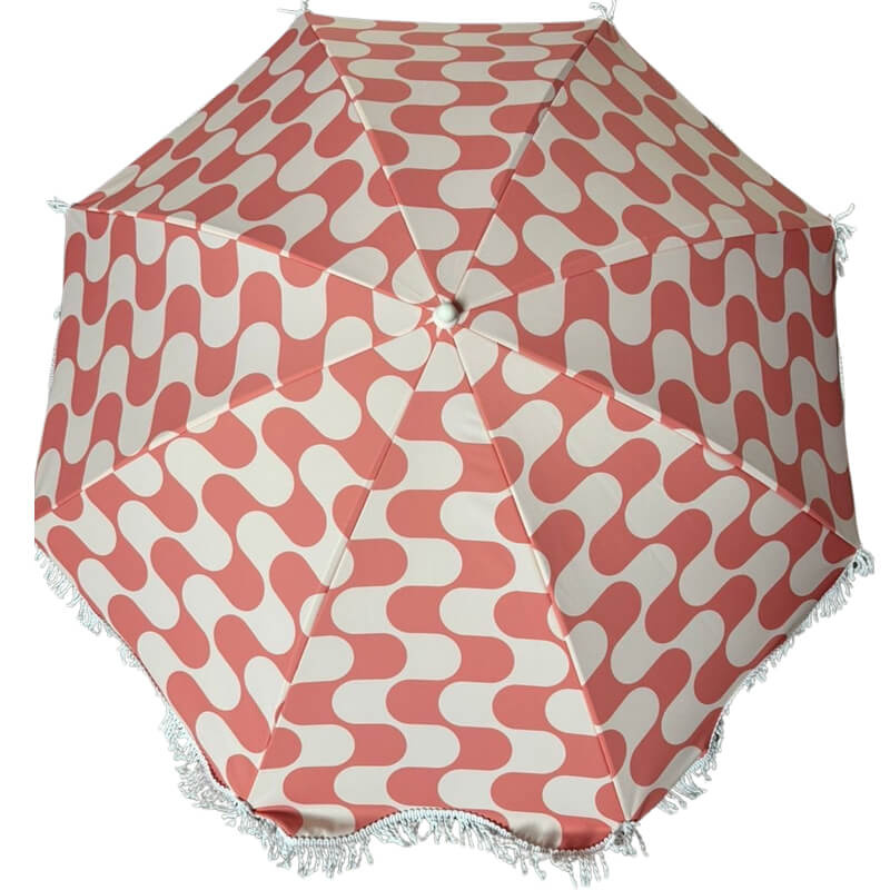Parasol soft pink grease met een swirl print erop zodat het een vrolijke mix is om buiten op te vrolijken. De parasol is klein van formaat voor ook op het balkon te zetten. Je kunt hem ook meenemen naar het strand zodat het fijn is om lekker in de schaduw te zitten op warme dagen. Natuurlijk is ook deze print een eigen ontwerp van Merel in Wonderland.