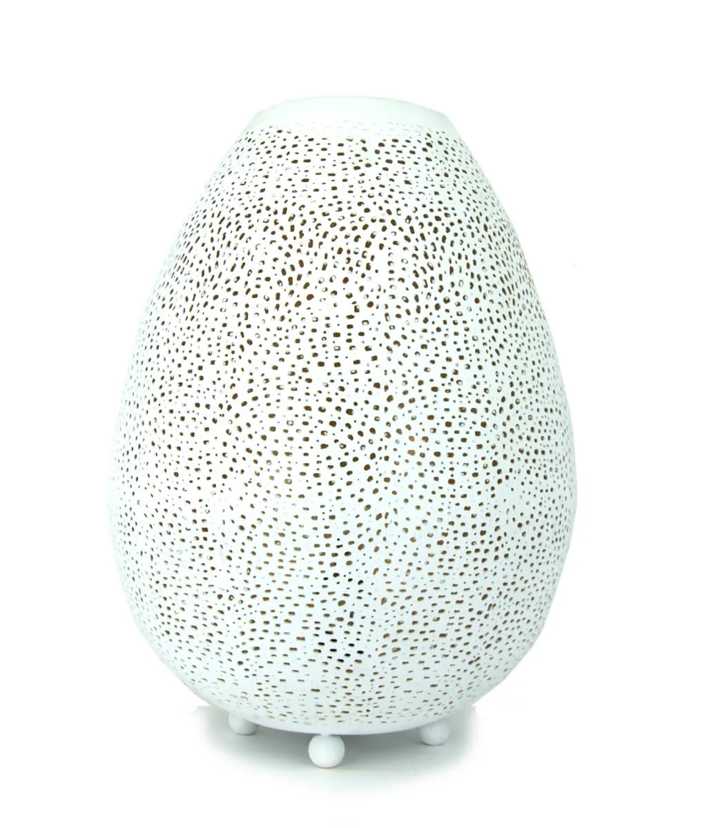 Warm en sfeervolle oosterse tafellamp van metaal gemaakt en met betoverende filigrain effecten als de lamp aan gaat. Gezellig voor op een dressoir of een donker hoekje in huis. Het maakt het meteen gezellig en de kleur is warm goud van binnen en de buitenkant mat wit vintage stijl. het leuke van deze stijl is dat het in vele soorten interieurs gestyled kan worden. het is niet aan een inrichting gedonder een landelijk interieur met een oosterse tata in de huiskamer kan makkelijk sta versteld van de verbluffende effecten die u kunt creëren met deze mooie oosterse tafellamp.