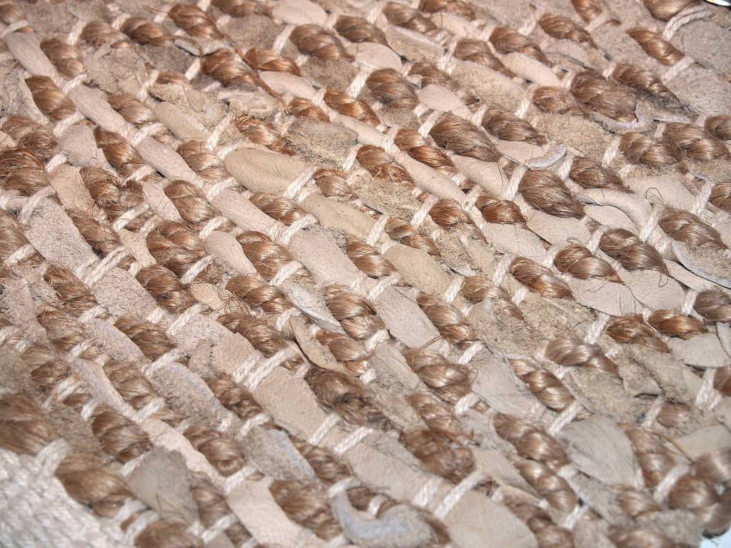 Een beige leren vloerkleed gemaakt van jute en reepjes van leer. Vloerkleed stoere uitstraling en topkwaliteit handgemaakt geen een is hetzelfde. Geeft een stoer uiterlijk ook zeer leuk voor in kledingzaak.