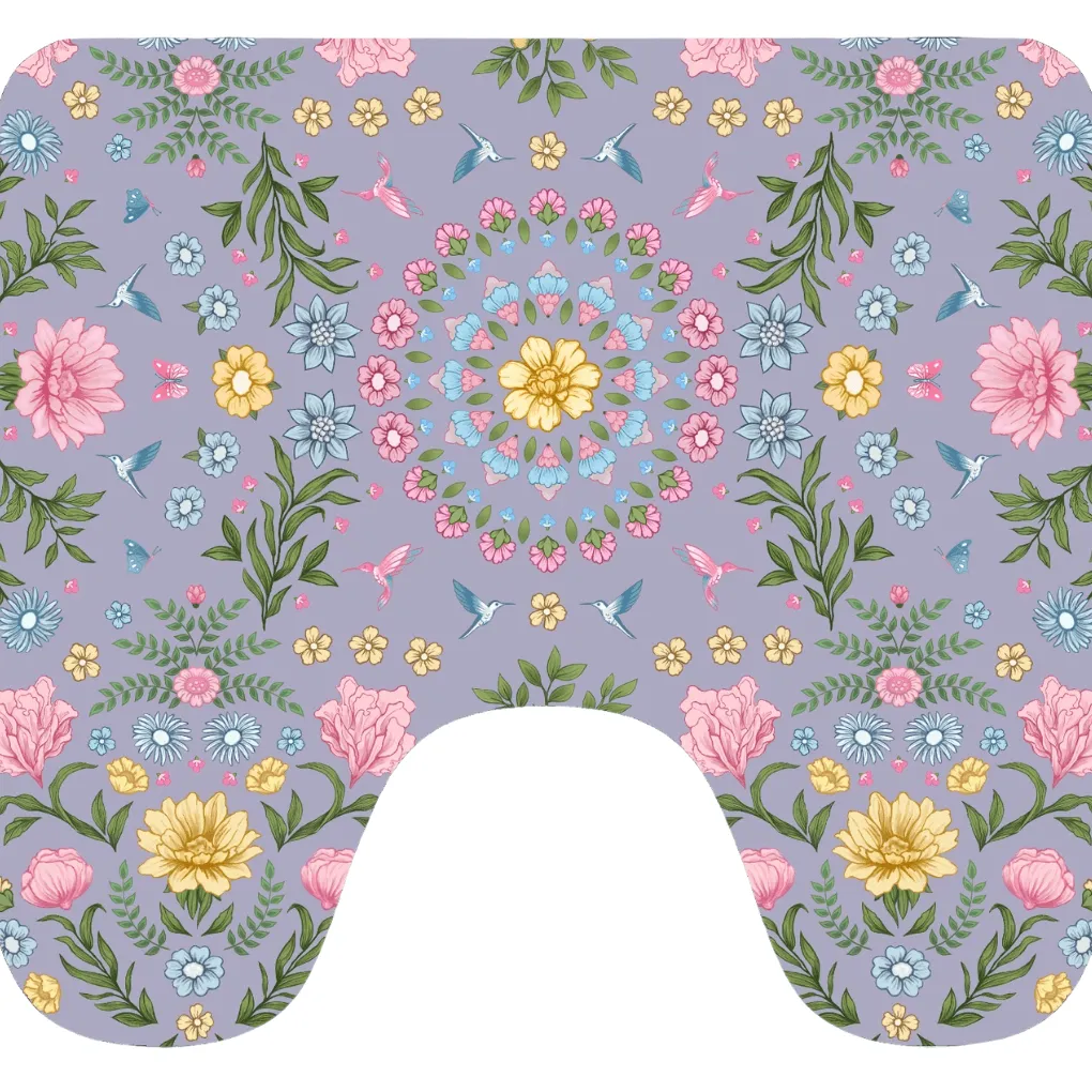 Een fijne toiletmat, om ook de kleinste ruimte in huis wat op te vrolijken! Voorzien van kleurrijke details en een mooie grijs/ lila ondergrond.