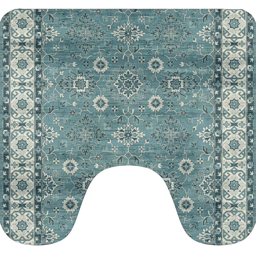 Toiletmat in een stoere petrol kleur en een wit/beige rand. Het matje is lekker zacht en van sterke kwaliteit.