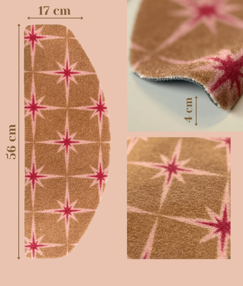 Deze trendy trapmatten toveren jouw hal om tot één en al gezelligheid! Voorzien van een groen/ bruine ondergrond en vrolijk roze sterren.