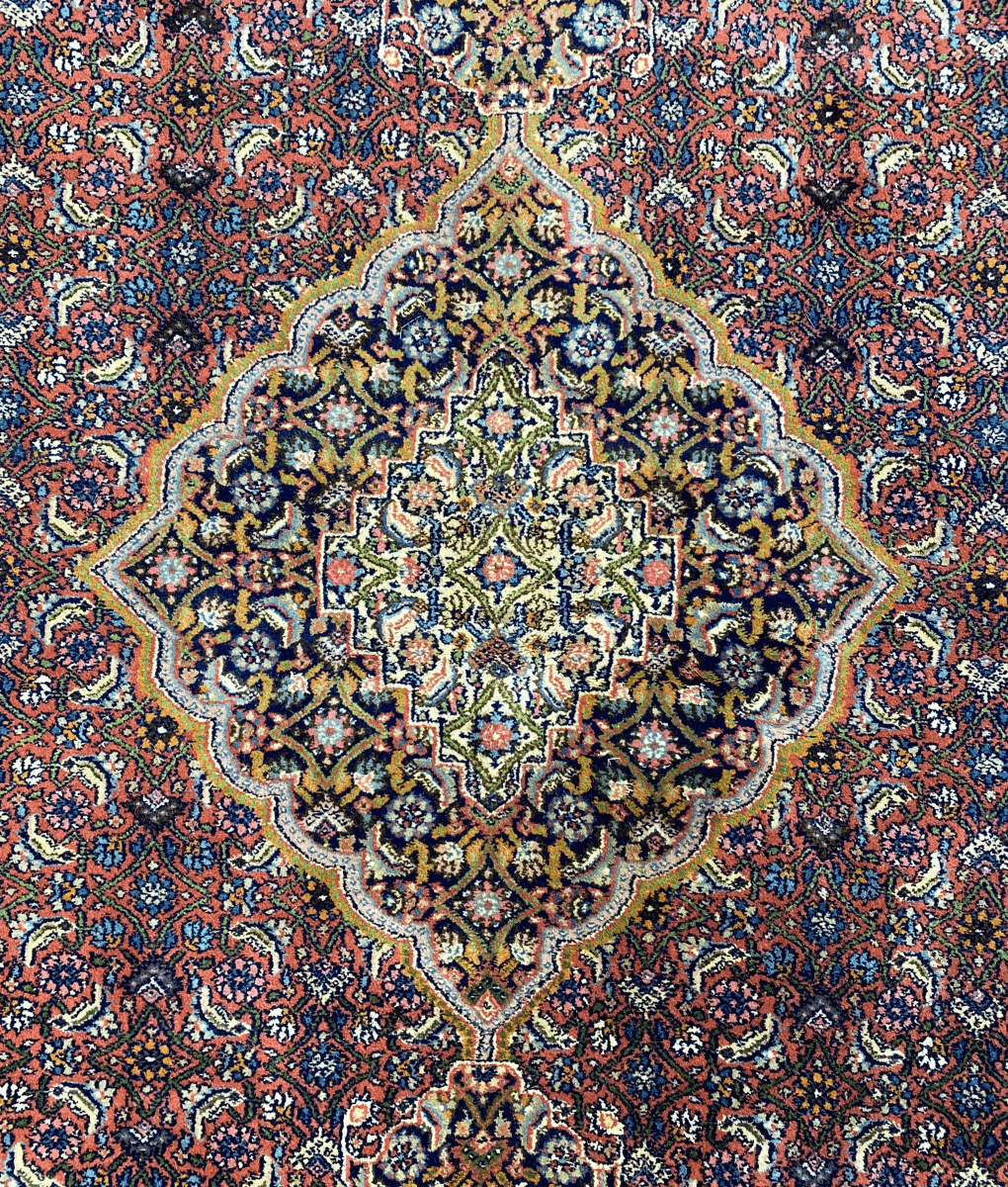 Prachtig Perzisch vloerkleed uit het vroegere Perzië. Het kleed is voorzien van een warme terra kleur in combinatie van een prachtig patroon in verschillende kleuren!