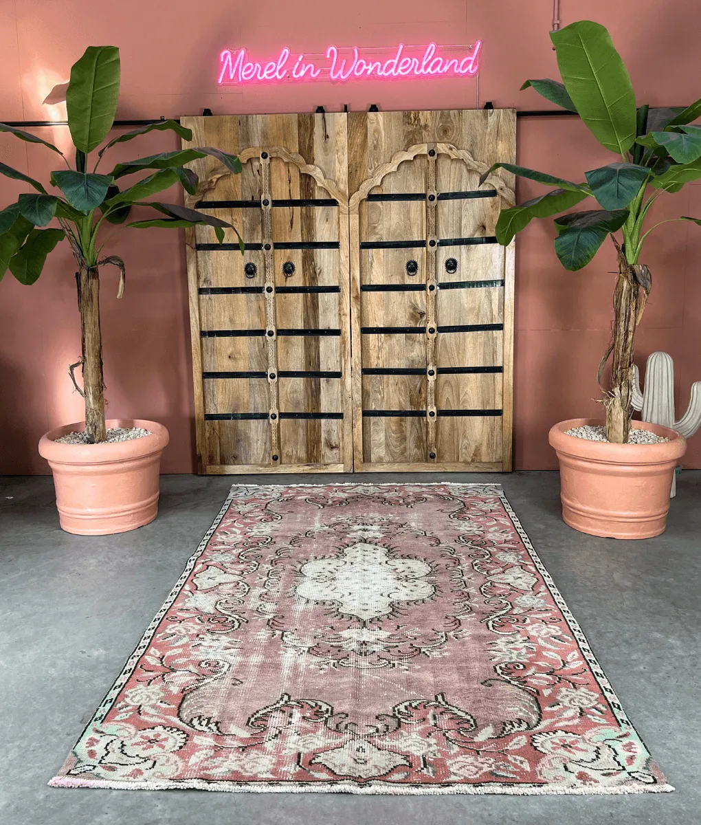 Vintage oude kelim met een oosters design en oersterk van wol gemaakt en fijn zacht aan de voeten. Het is een oosters tapijt welk origineel is. De kleuren zijn mooi en elkaar overlopen. Authentiek en handgeweven. Het patroon ligt mooi in het midden met een sierlijk kader eromheen.