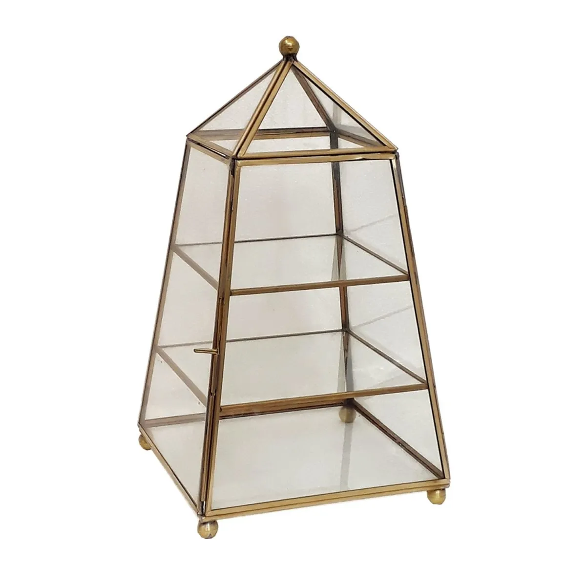Een prachtig vakmanschap is dit mooie messing vitrinekastje welke bestaat uit 3 lagen. Het glas en de messing is er met de hand ingezet en je ziet de lasnaden zitten. Dat maakt het ook dat het geen fabriekswerk is, maar een kunstwerk op zich!