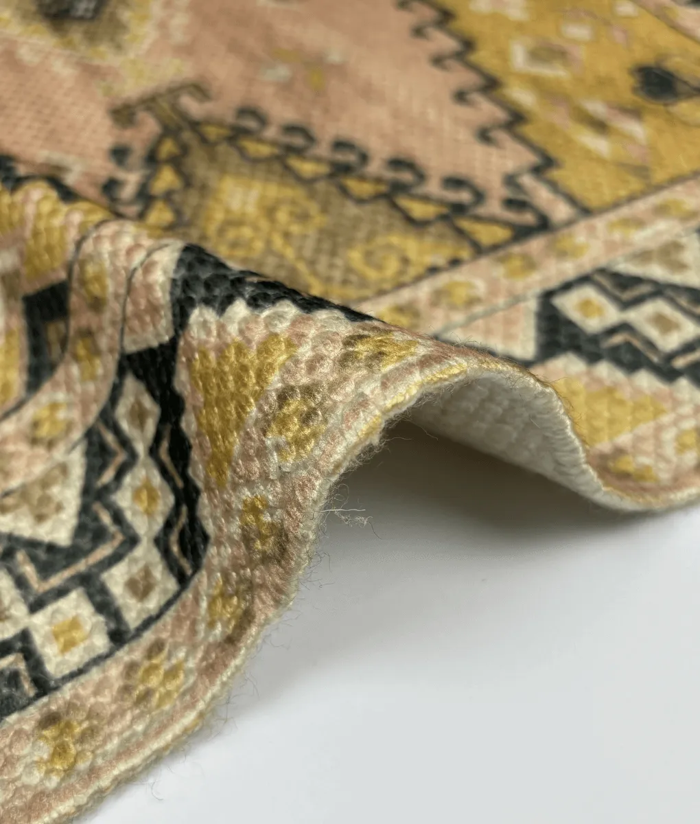Een mooie roze tint heeft deze loper met de print genaamd 'Soro'. Gemaakt van PET, speciaal voor in die gang waar wel wat kleur mag komen, of als keukenloper om het koken wat gezelliger te maken. Daarnaast is de loper door het materiaal ook buiten te gebruiken. Pet is garen gesponnen van gerecycled plastic en is daardoor anti allergeen en makkelijk schoon te maken met water. Door de maat en materiaal is het dus geschikt voor vele ruimtes. We hebben dan ook een hoop prints in deze nieuwe loper collectie. Een beetje bruin, groen en geel zit ook in dit kleed en wordt daardoor versterkt met het boho design.
