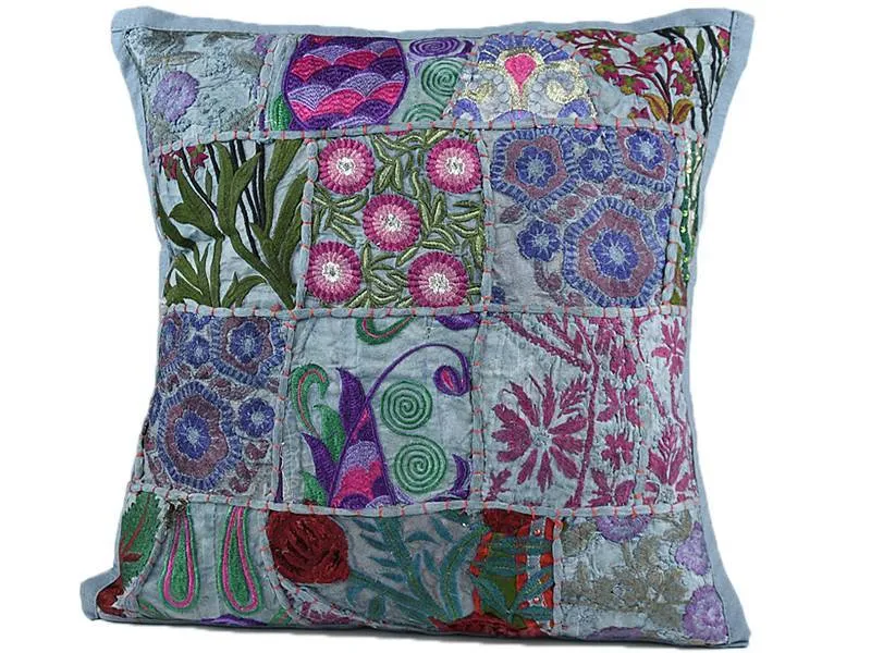 Mooie aanbiedingsset voor op uw tuinbank helemaal in stijl met deze set bestaande uit 5 matraskussens van grijs patchwork en 7 sierkussens zodat u meteen lekker buiten kunt zitten. De matraskussens zijn 60 cm bij 60 cm dus dekt de hele bank. Ook zijn ze goed gevuld zodat u lekker comfortabel zit. Elk kussen is uniek van stof en detail, want ze zijn hand gemaakt in India van gerecycled patchwork en elk heeft versiersels zoals kraaltjes en pailletten erop geborduurd. Deze set is in 2 maten te verkrijgen en in 2 kleuren blauw en grijs als hoofdkleur.