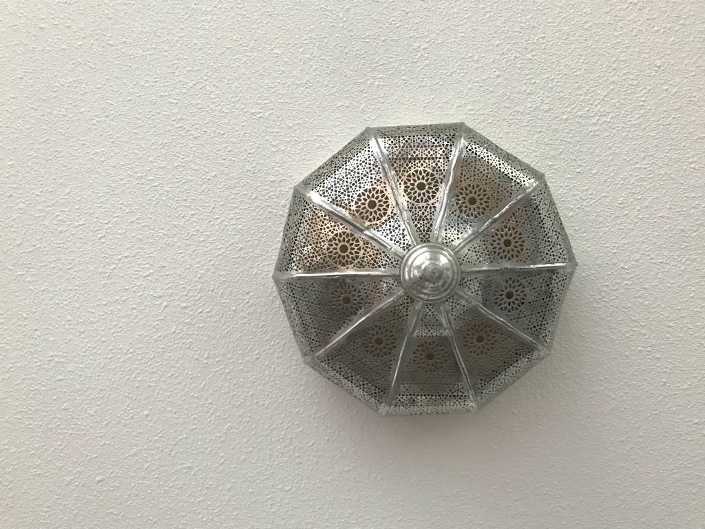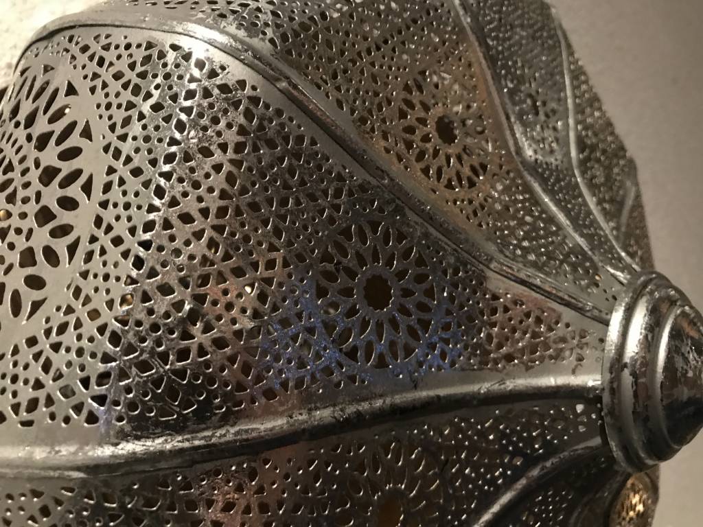Prachtige plafonniere die de sfeer écht in huis brengt. De gaatjes in het metaal zorgen voor een speciaal effect op de muur. De buitenkant van de lamp heeft een vintage zilveren look door de folie die erop zit. Aan de binnenzijde is de lamp ook zilver. Hierdoor geeft de plafonniere 's avonds gezellige patronen als sfeerverlichting.